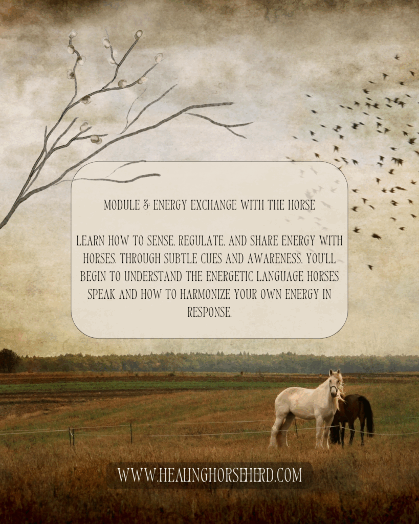 Learn how to sense, regulate, and share energy with horses. Through subtle cues and awareness, you’ll begin to understand the energetic language horses speak and how to harmonize your own energy in response.